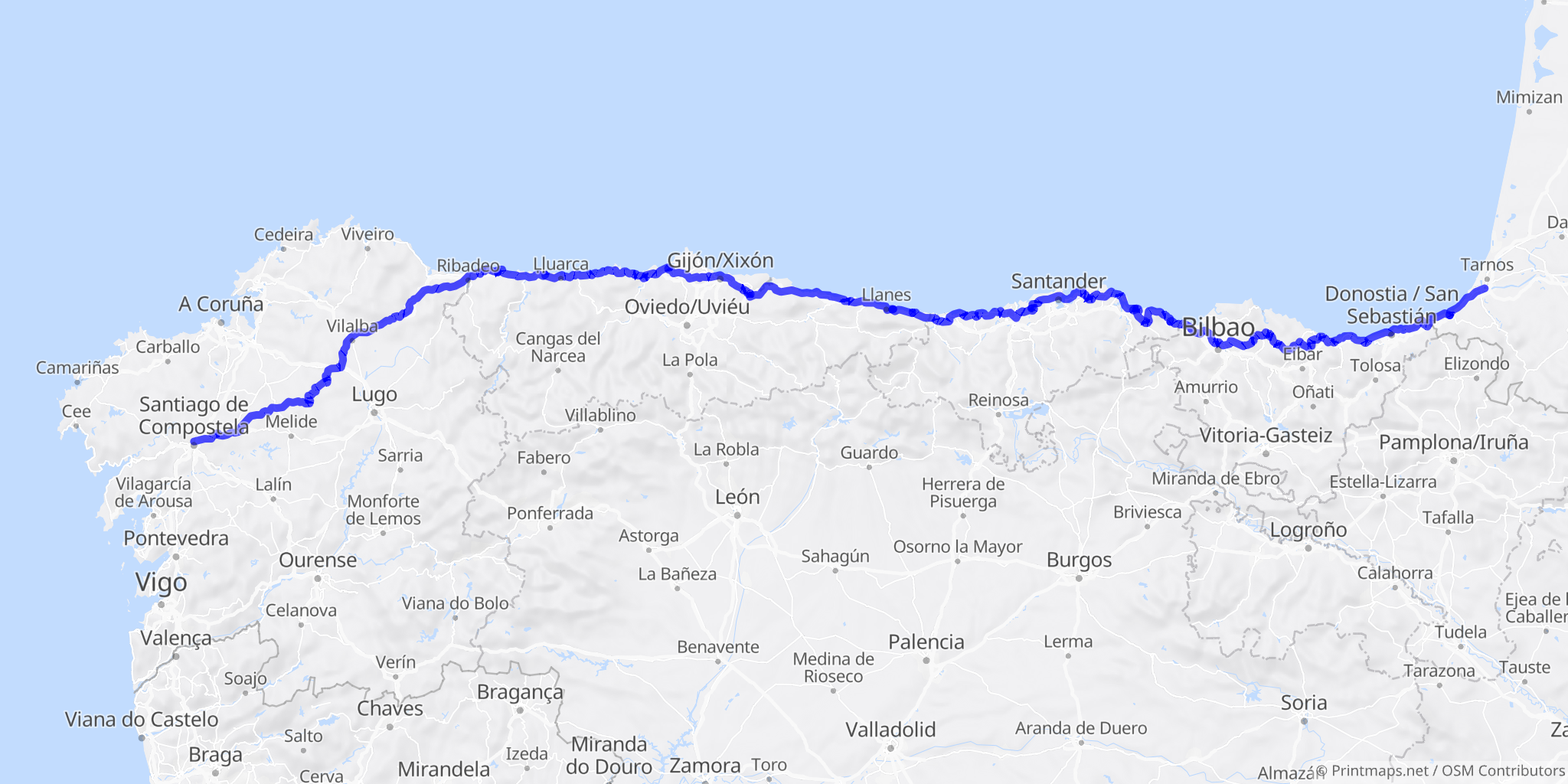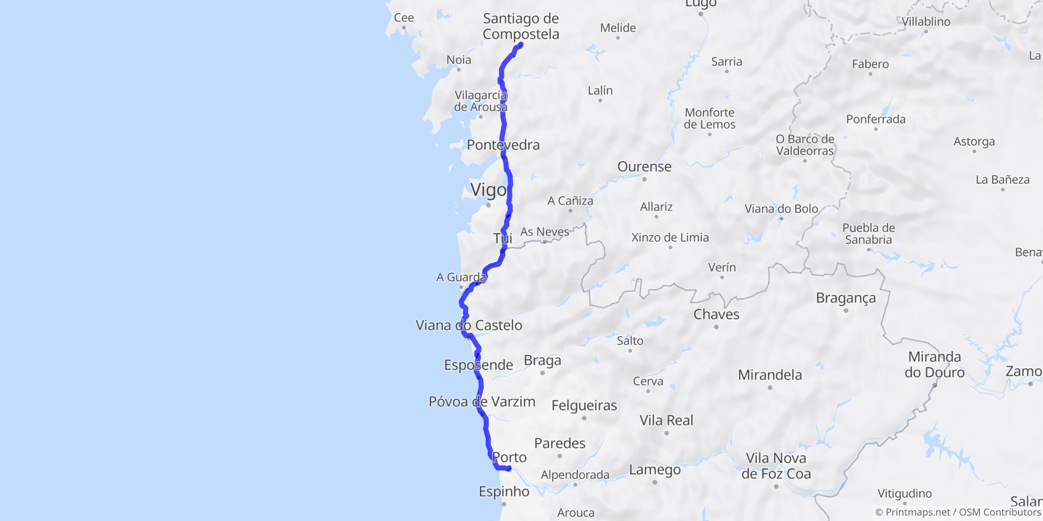Von Porto immer am Meer nach Spanien und bis nach Santiago.