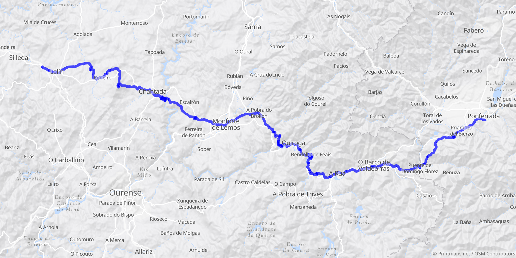 Der über 1000 km lange Jakobsweg von Sevilla bis nach Santiago.