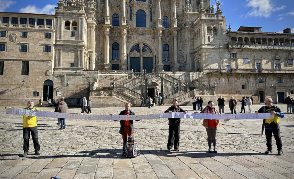 Marco Cuda wohnt in Lamezia Terme in Calabrien im Süden Italiens. Von dort aus ist er 2025 gestartet. Bis Benevento gibt es keinen offiziellen Weg, also hat er sich einen ausgedacht. Er ist viele Staatsstraßen und Wege gegangen. Von Benevento nach Rom ist er dann die Via Francigena del Sud gegangen. Von Rom nach Sarzana die Via Francigena. Von Sarzana nach Ventimiglia die Via de la Costa Ligure. Von Ventimiglia nach Arles die Via Aurelia. Von Arles nach Montpellier die Via di Arles. Von Montpellier nach Carcassonne die Via del Piemonte Pirenaico. Von Carcassonne hat er eine Abzweigung genommen, um nach Toulouse zu gelangen. Von Toulouse ist er dann nach Lourdes gekommen. Von Lourdes ist er dann über die Via del Piemonte Pirenaico bis nach Saint Jean Pied de Port gekommen. Und dann ging es auf dem Camino Frances weiter nach Santiago. Von Santiago aus ging es weiter nach Muxia und Finisterre, und als er in Finisterre angekommen war, kehrte er nach 145 Tagen und 4043 Kilometern zu Fuß nach Santiago zurück.